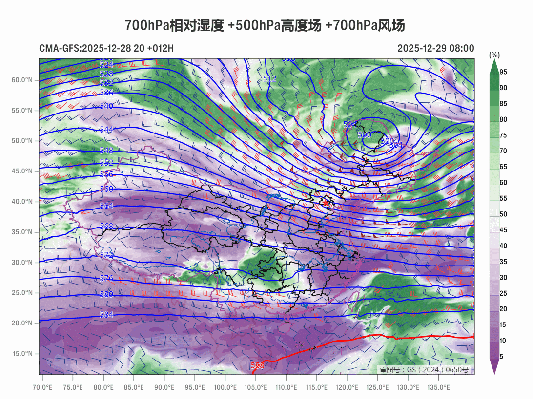 从大气环流形势来看,此次跨年雨雪的形成与西南低涡、南支槽的活动密切相关。在西南低涡的引导下,700hPa层面的西南风已逐步显现,开始输送暖湿气流;预计明后两天,随着南支槽逐步东移并持续发力,暖湿气流将进一步向北、向东推进,雨雪范围也将同步向东北方向扩展,逐步波及陕西、河南以及长江中下游广大地区,跨年前后的雨雪大幕即将正式拉开。