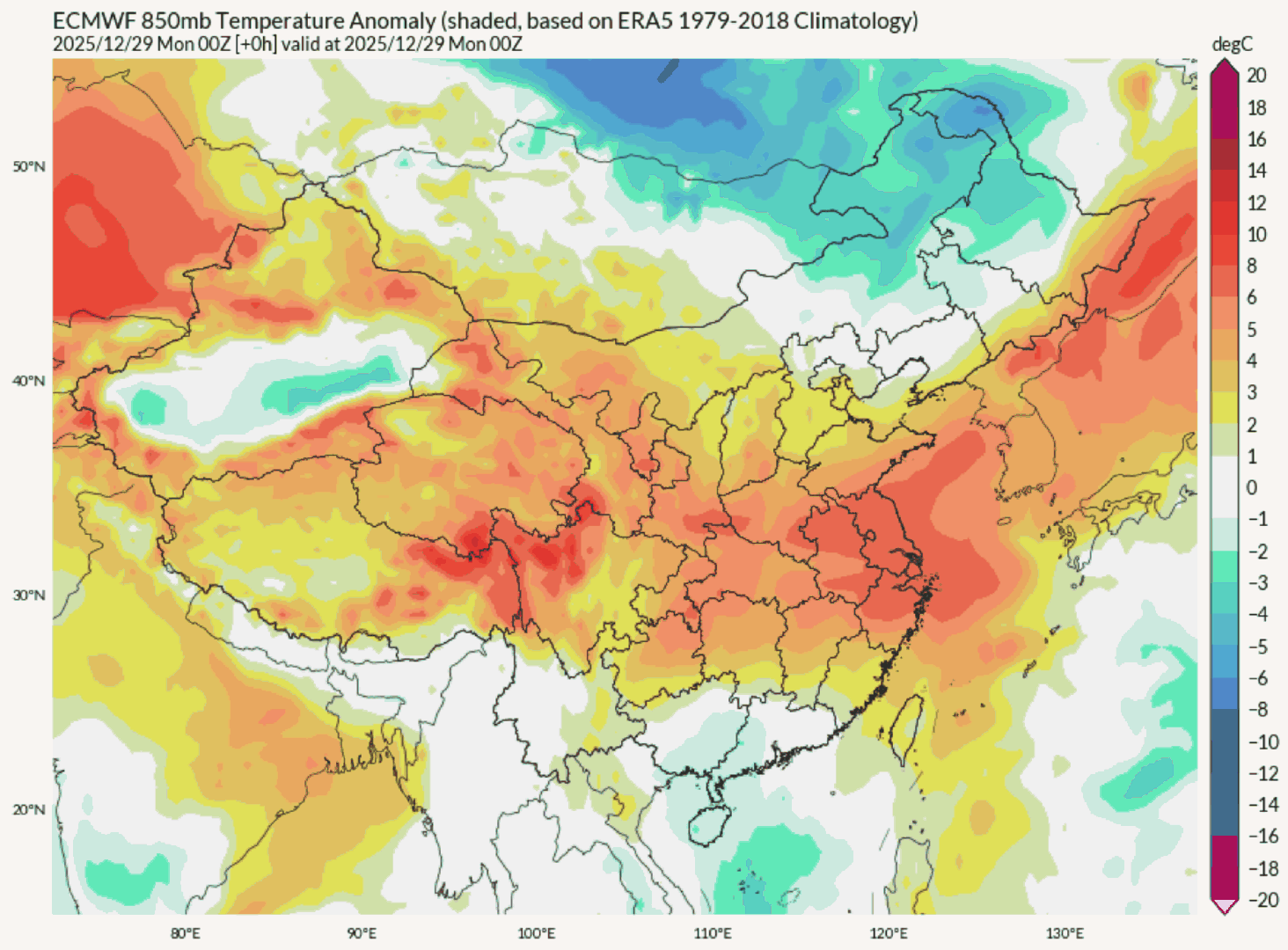 与之不同的是,我国西部地区受冷空气路径的影响,将持续维持大幅偏高的气温状态,与中东部的偏冷形成鲜明对比,南北冷暖分化的态势将贯穿1月上旬。