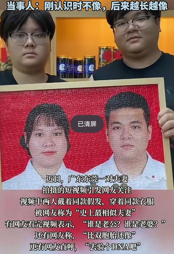 广东东莞,一对95后夫妻火了,因为他们长得太像了,短视频平台全是他们,所有人都在说,这俩人是双胞胎吧,还有人说,建议他们去做个DNA,这样以后孩子长啥样,就不用吵架了,大家都在想,这到底是怎么一回事。