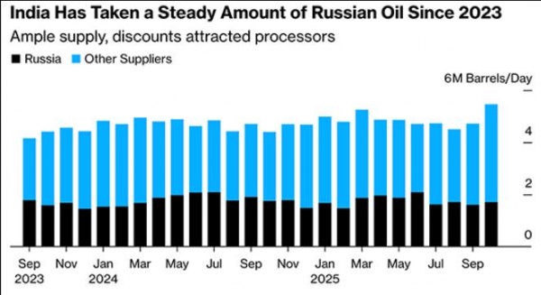 截至16日,就有近6000万桶俄罗斯原油正在运往印度,其中一半直接送到印度信实工业的港口,据估算,10月流向印度的俄罗斯原油日均约为170万桶,比9月高出约6%,很明显,即便美国一直对印度施压,但印方的确没有停止购买俄油,印度炼油厂也没有大规模转向其他来源。