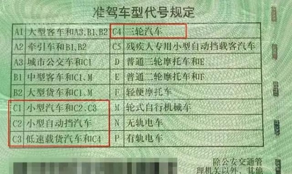 C1里自带了C4的准驾范围,所以能开三轮汽车