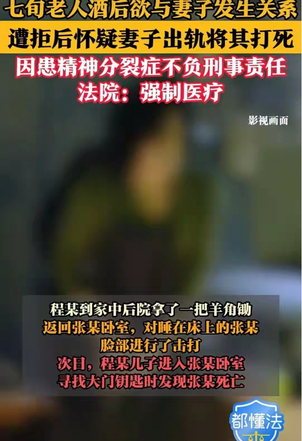 陕西安康75岁老头用羊角锄把妻子活活打死,供认不讳,证据确凿,结果却因为精神分裂症不用坐牢,只需要强制医疗。