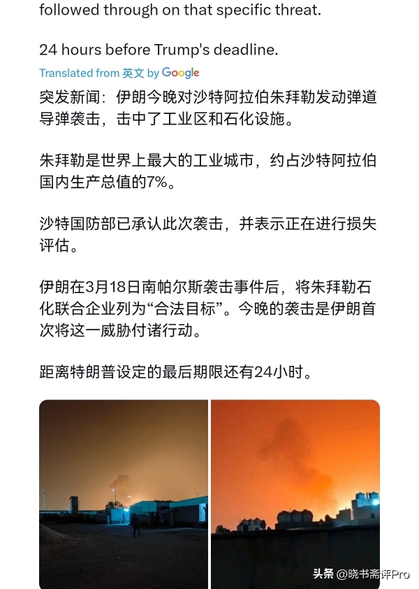 显然,伊朗的这一反击,沙特和美国都会很肉疼。对沙特而言,朱拜勒工业区一旦受损停产,不仅直接拖累本国经济,而且这可能影响沙特兑现对美国投资承诺的能力。而至于美国,这当然说明美国保护不了盟友,而且美国企业怕也是会损失惨重。伊朗这当然是下死手了。