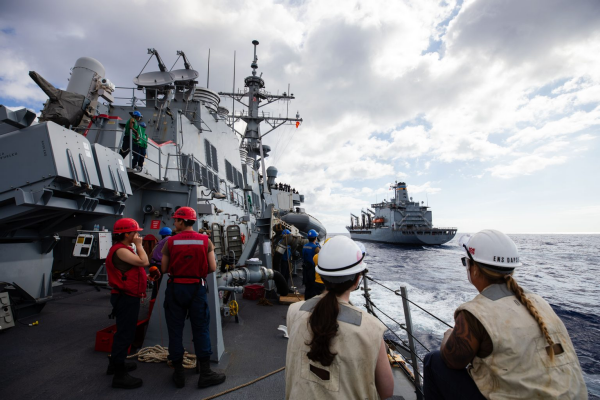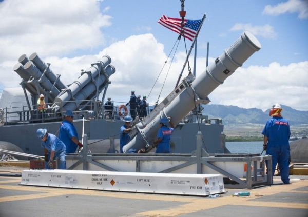 (环太军演最新图片显示,美阿利·伯克级驱逐舰正在使用挪威NSM导弹替代"鱼叉")