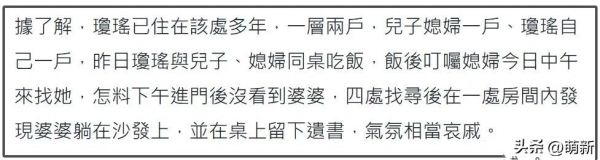 最后的晚餐像是一场预演。根据亲友透露,老太太当天和儿子儿媳一起吃饭,还特意嘱咐第二天来看她。这种令人心酸的细节,让人想起心理学家威廉姆斯说过的话:「当一个人已经做出决定的时候,反而会表现的格外平静。」
