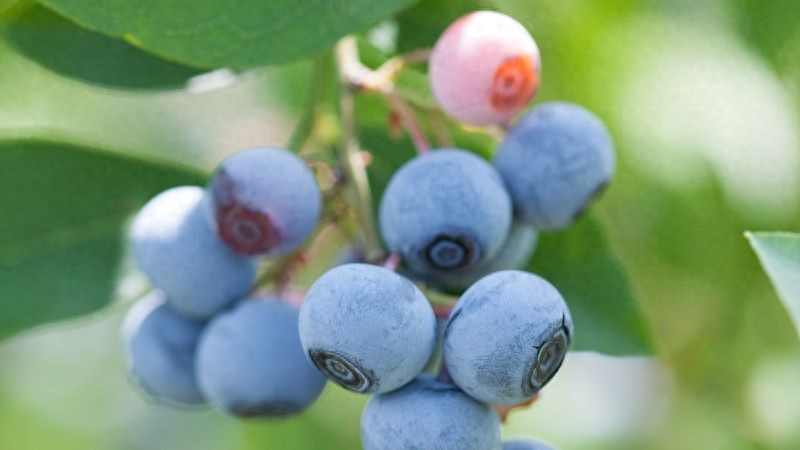 - 花青素主要分布在蓝莓果皮中,小蓝莓的果皮占比更高,花青素含量比大蓝莓高23%-37%。