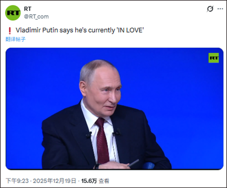 据今日俄罗斯(RT)报道,在现场,有一位女记者问道,"您刚才说过,您相信一见钟情,那么您恋爱了吗?"