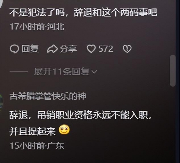 辞退,吊销职业资格永远不能入职,并且捉起来