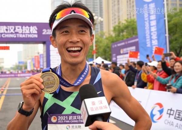 冲线后潘元晨难掩激动,在采访中多次表示意外与惊喜。"真的没想到能拿冠军,武汉是我的福地。"她笑着说,去年在此创造个人最好成绩,今年再度圆梦,这座城市给了她太多好运。谈及比赛感受,她点赞赛道氛围与城市风光,"沿路樱花很美,观众特别热情,每一步都充满力量"。