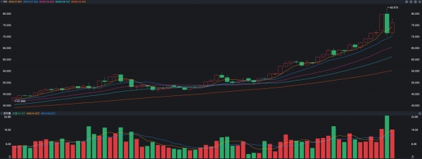 让人出乎意料的是,经历了黑色星期一之后,贵金属昨夜继续出现大涨,弹性最好的还是白银,纽约白银期货最新收盘价为76美元,涨幅达到了7.88%,从盘中的最大涨幅看则达到了10.79%,最高时到了78美元。