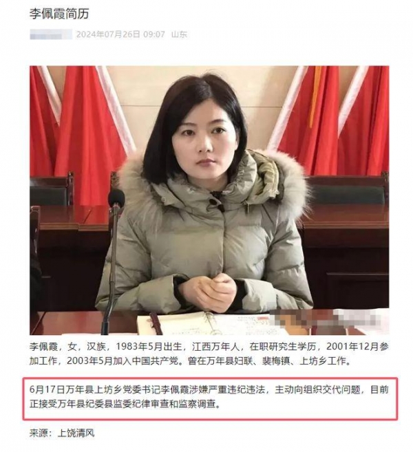 她名叫李颖,今年35岁,丈夫是一名普通公务员,两人育有一子,目前正在上高中。作为一名党员干部,李颖在上坊镇工作多年,事业相当不错。