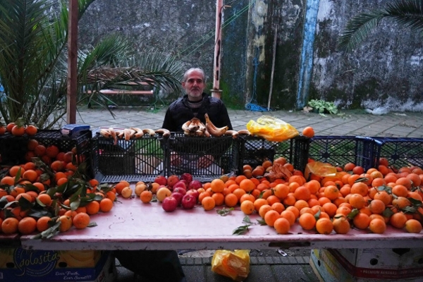当地时间2025年12月25日,伊朗里海南部海岸,港口城市安扎利,一名小贩在传统的周四街头市场等待顾客。视觉中国 图