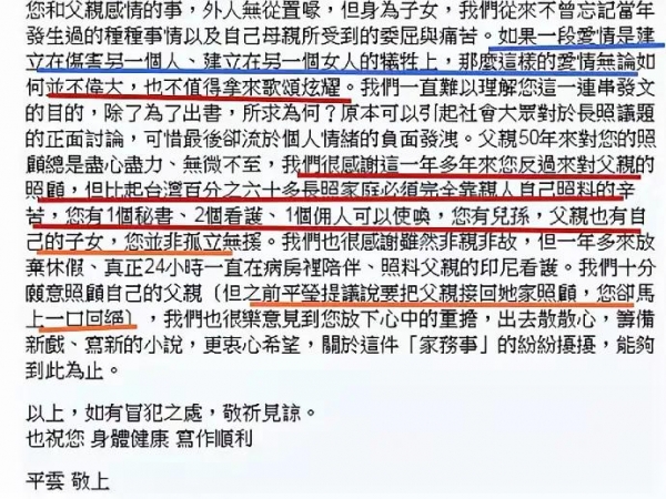如今琼瑶儿媳出手,想必也是势不两立,平家子女得到了太多,父亲将遗产都给他们,三个孩子都在皇冠工作。