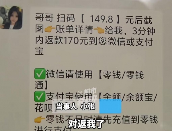 小张还被告知,他们除了有美女外,还有一个赚钱的项目,就是充20元返40元,充150元返170元。小张没想到,还有这样的好事。