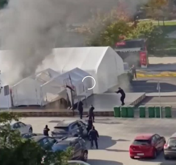一段网上流传的视频显示,一名男子一瘸一拐地逃离现场,与此同时,武装安保人员正朝其中一座帐篷靠近。当地媒体发布的一段视频显示,现场随后响起数声枪响,帐篷内随即起火。