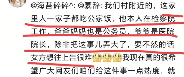 网友说是检察院的,家人也都是公职人员,但官方还没核实,到底是不是真的,还得等调查。