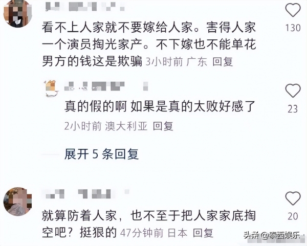 向太的爆料一出,网友的评论瞬间炸开了锅。"三太也太抠了吧,自己身家几百亿,女婿办婚礼一分钱不出,难怪窦骁要闹离婚""原来豪门婚姻这么现实,男方没利用价值就被提防成这样",类似的声音在评论区刷屏。