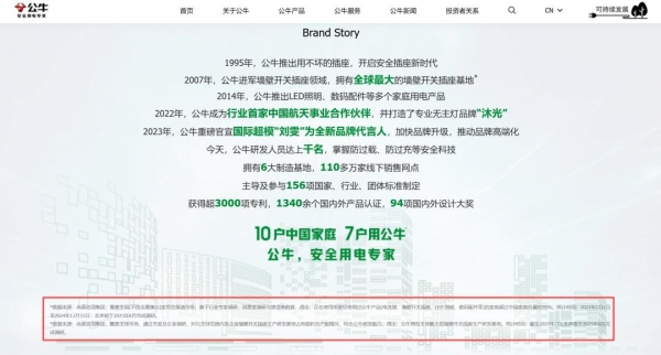 "10户中国家庭,7户用公牛",是插线板巨头公牛集团(603195.SH)长期使用的宣传语。值得注意的是,公牛集团在使用这句宣传语时,有时下方会用小字注明:"正在使用或曾经使用过公牛产品(电连接、墙壁开关插座、LED照明、数码配件等)的家庭",有时也未用小字注明。