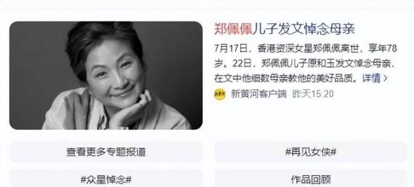 最近,娱乐圈又失去了一位老戏骨,《唐伯虎点秋香》中的华夫人郑佩佩于7月22日在美国旧金山离世,享年77岁。本以为这位侠女大姐大就此安息,谁曾想这才是麻烦的开始!这到底是怎么回事?!