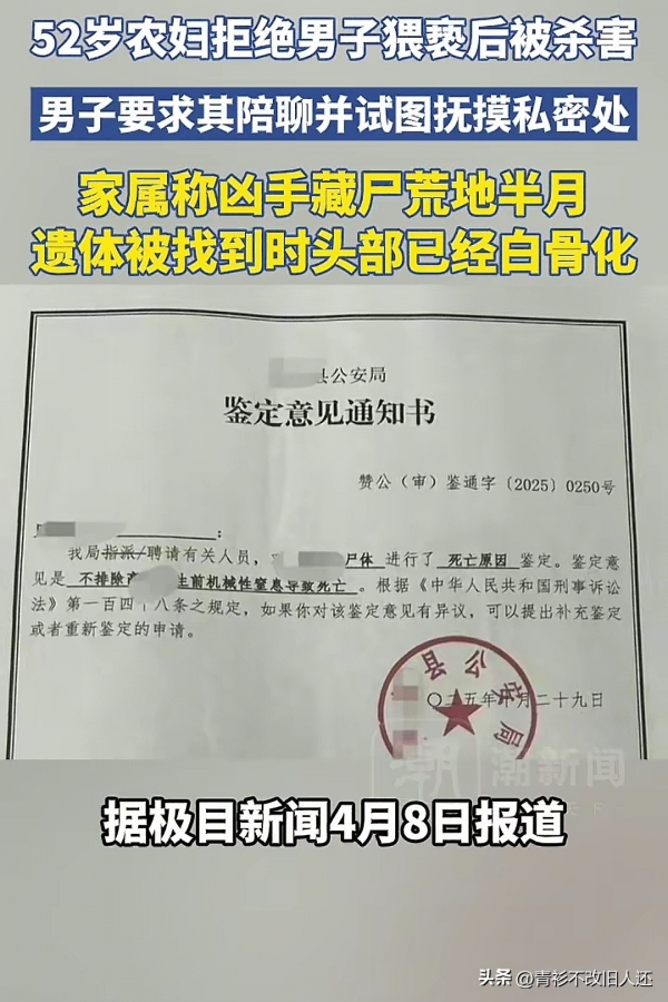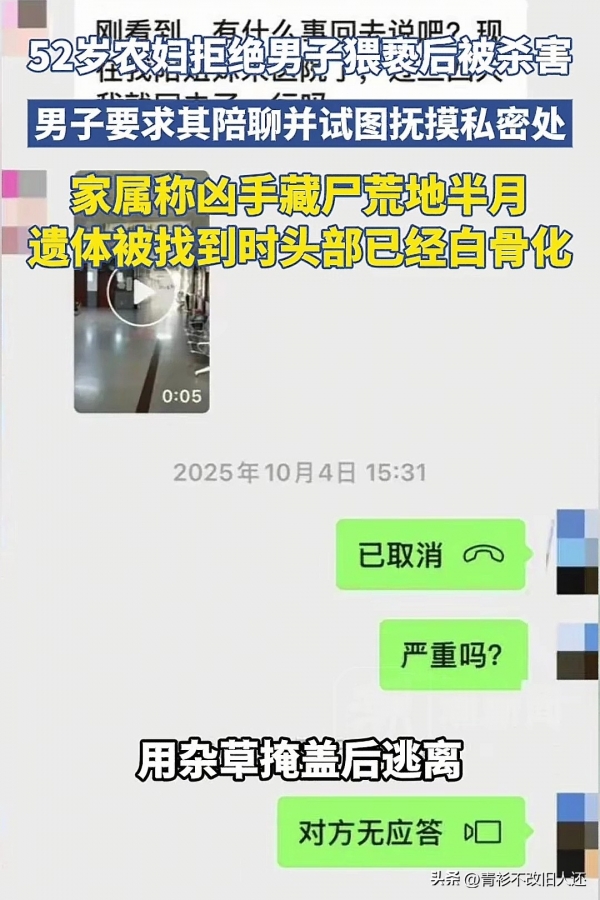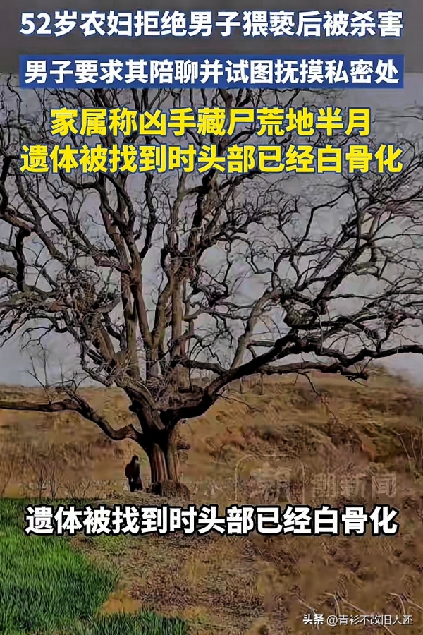 河北石家庄一位52岁的农妇,仅仅因为拒绝了男子的猥亵,就被残忍杀害,尸体还被藏在荒地长达半个月!