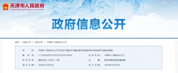 近日,天津市人民政府办公厅发布印发《关于健全本市基本医疗保险参保长效机制若干措施》的通知。