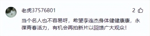 网友说:当个名人也不容易呀,希望李连杰身体健健康康,永葆青春活力,有机会再拍新片以回馈广大观众!