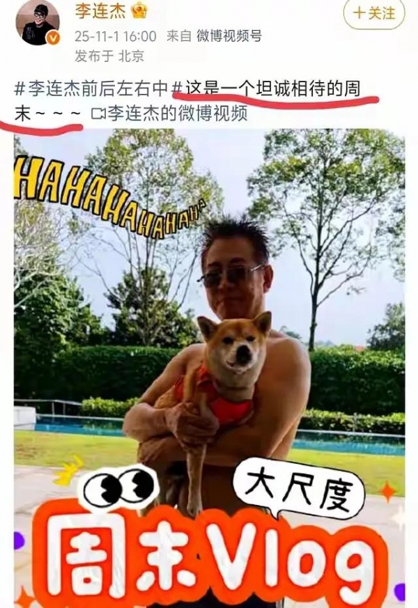 11月初,他发布了一段名为《这是一个坦诚相待的周末》的Vlog,直接选择了最刚、最无法辩驳的方式,脱衣自证!