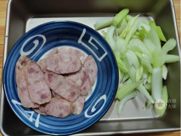 腊肠,西芹,食盐