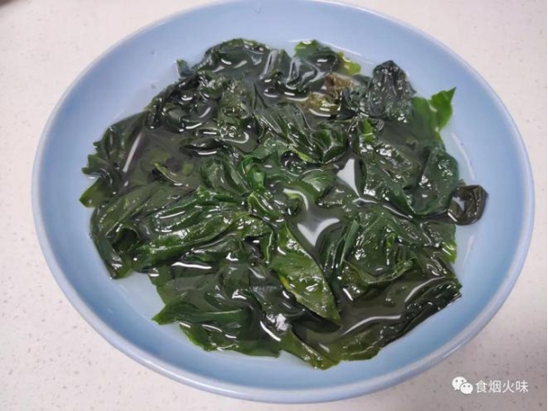 1.海带苗放在水中浸泡10分钟,很快它就被泡发了。海带苗泡发后取出放在一旁洗干净即可;