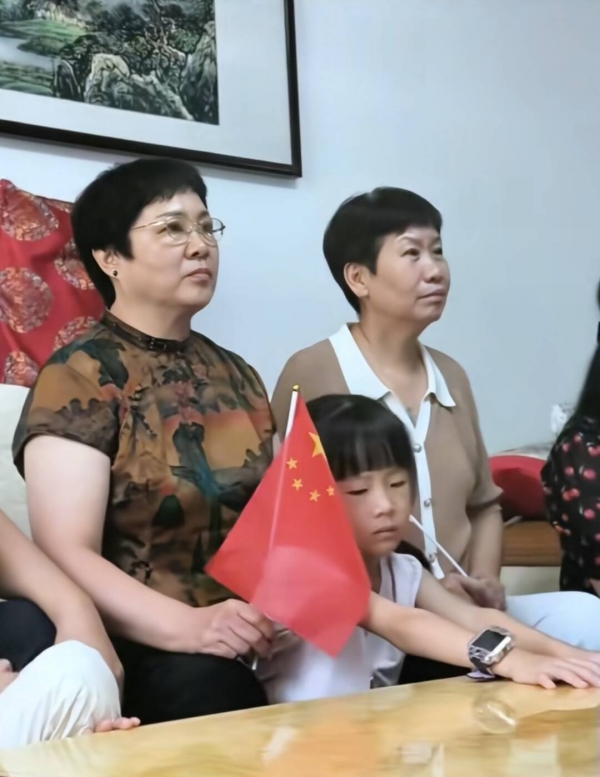 9月3日阅兵当天,李依潼父母小孩一家人早早在电视机前守候,当看到妈妈的身影时,孩子开心地跳了起来,而李依潼母亲则流下了激动的泪水。
