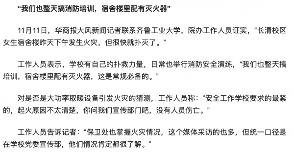 火灾扑灭之后,相关记者对此事进行了相关采而,二校方也是相互推搡,踢皮球式的回答。