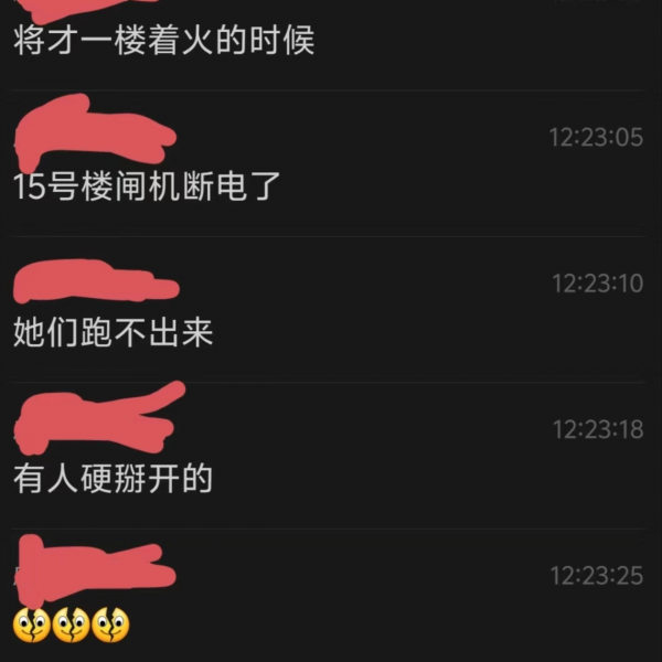 有学生表示:"楼上逃下来,闸门都没开,还要人脸识别,烟很大很黑,我们跑下来根本没办法识别,没人来开门,真的很吓人。到最后,领导解决的方法是不准安装窗帘,只是对被烧到的寝室负责,其他的有些人轻微一氧化碳中毒也没人管。"