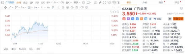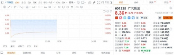 受此消息影响,广汽集团AH股双双大涨,A股一字涨停,H股涨超12%。