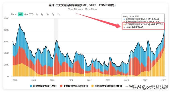 三大交易所铜库存量,纽约最高
