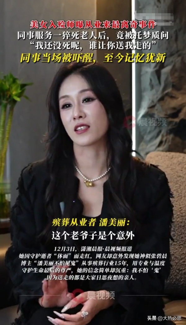 这事儿的主角,是位网名叫"潘美丽不怕见鬼"的资深入殓师。不瞒大家说,我第一眼看到这名字就服了,既接地气又透着股豁达劲儿。