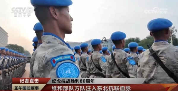 这次受阅的维和部队方队遂行过国际维和任务,还具有东北抗联血脉。在他们中间,还看到了记者之前采访过的来自陆军第83集团军某旅"杨靖宇支队"的战士们。这样的安排既突出对抗战胜利的隆重纪念,又展现国家履行国际义务、维护世界和平的大国担当。