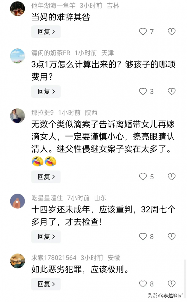 继父性侵继事件也不是第一起了,因此网友们表示,带女儿再婚的,一定要小心谨慎,擦亮双眼,因为这样的案例太多了。