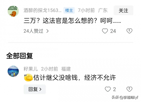 也有网友表示,估计他的继父也没有太多的钱,而且赔偿是有一定标准的!