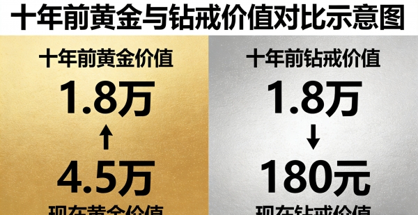 对比一下更扎心:十年前1.8万买黄金,现在至少值4.5万,翻了两倍多;买钻戒,直接缩水到零头。黄金有统一报价,回收方便,而钻石回收渠道窄、定价不透明,天然钻石的"稀缺神话"早就破了。