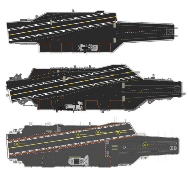 ▲福莱斯特级、小鹰级、福建舰甲板对比图