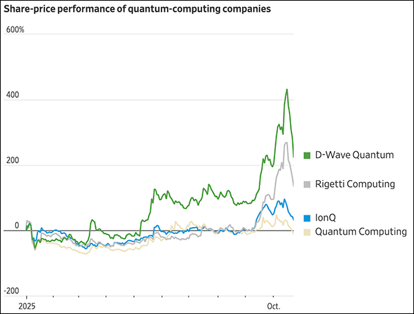几家量子计算公司今年来的股价表现 《华尔街日报》制图