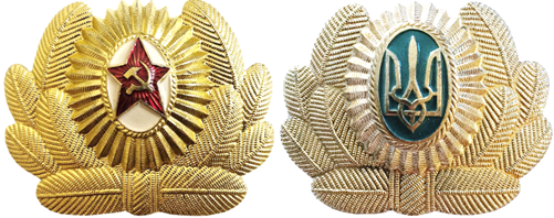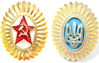 1955-1992苏联(左)与1992-2016年代乌克兰(右)陆军军官帽徽