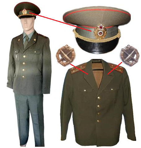 废除了军官区别于士兵的兵种色牙线,废除了俄苏军事传统中颜色鲜艳的植绒帽墙和平行四边形领章(改为美式的单一金色领花);