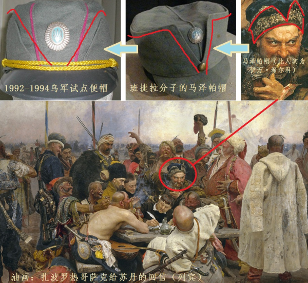 在这种"信仰东正教"绑定"诅咒马泽帕"、"诅咒马泽帕"绑定"信徒天经地义以卫道护教心态反对'乌克兰背叛俄罗斯'"的环境下,1990年代乌克兰军队第一次引进马泽帕帽作为制式便帽的尝试就遭到了失败,原型单品(下图左上)在少量生产后很快被废除。