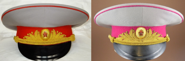 早期M69苏军服饰中的正红(左)与覆盆子红(右)