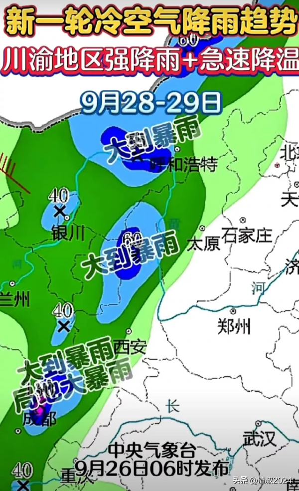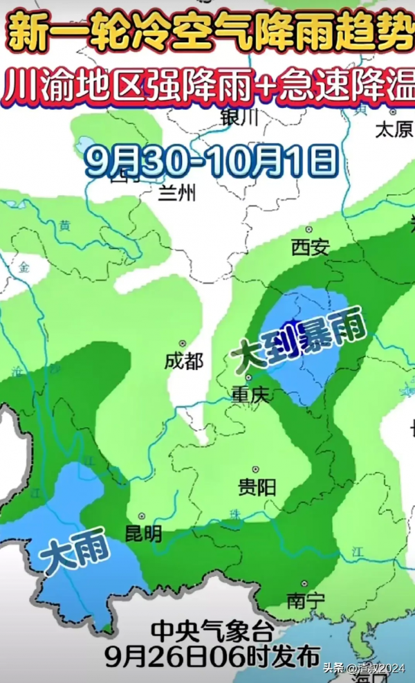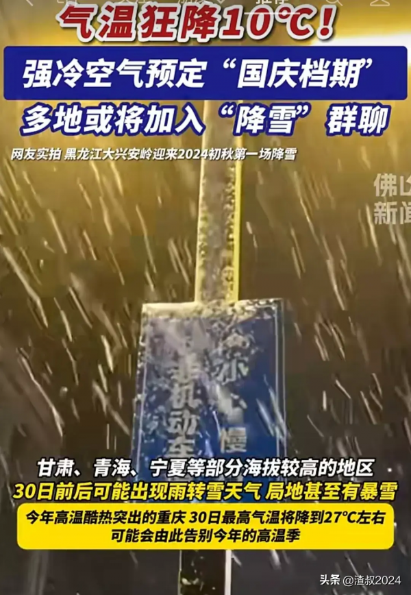 甘肃、青海、宁夏等部分海拔高的地区,30日前后可能出现雨转雪天气,局地甚至有暴雪,今年高温酷热突出的重庆30日最高气温将降到27度左右,可能由此告别今年的高温季!