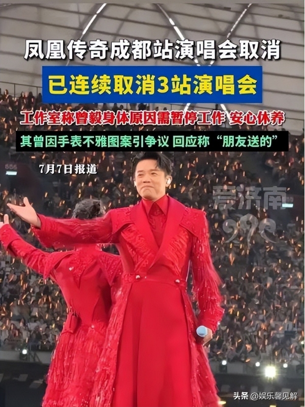 不过,这些都只是网友的猜测,对于取消三场演唱会的原因,凤凰传奇工作室也做出过回应,称是因为曾毅身体不好,医生建议他暂停工作,需要好好修养。