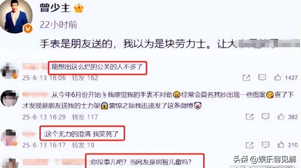 很多网友认为,曾毅是在把责任"甩锅"给朋友,也是因为如此,曾毅因为"手表风波"冲上了热搜,他的那块手表也引发了网友争议。