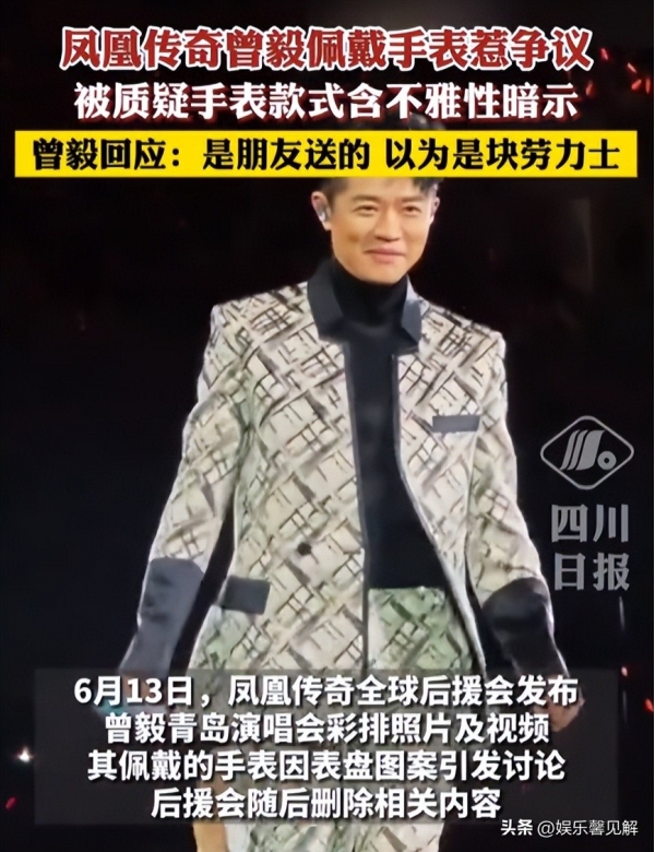 可就在前段时间,曾毅因一块手表冲上热搜,口碑受到影响,而更令人没想到的是,就在手表风波逐渐平息后,凤凰传奇再次遭受"重创",引起网友争议。