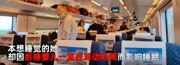 铁路公司也做了些事,静音车厢2019年在京沪线、成渝线上都试过,拿出一小部分车厢给想安静的人,专家也提议,对婴儿多一点理解,对能管教的孩子家长要带好,家长自己也可以提前准备点玩具、故事书,给孩子找点事做,孩子踢椅背了就问问他要不要换个姿势,让他想想自己要是前面那个人是什么感觉,真遇到问题了,大家说话都别那么冲,和气一点,找乘务员来帮忙,能少很多矛盾。